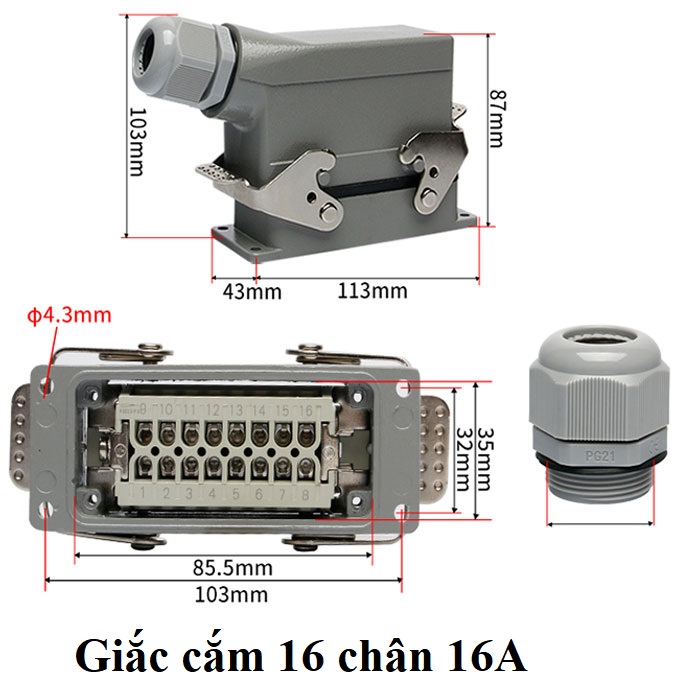 Bộ kết nối dây điện 16 chân HE-016-M HE-016-F HDC-HE-016-1 là thiết bị kết nối dây điện, dây tín hiệu, dây động lực cho hệ thống điện, hệ thống truyền thông công nghiệp, hệ thống máy ép nhựa công nghiệp. Bộ kết nối dây 16 chân, cổng kết nối dây 16 pin