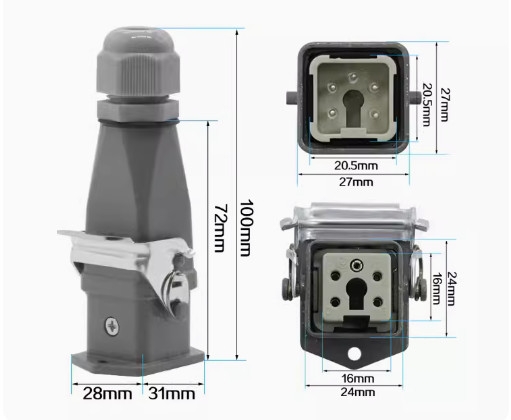 Bộ kết nối dây điện 5 chân HA-004-M HA-004-F HDC-HA-004-2 là thiết bị kết nối dây điện, dây tín hiệu, hệ thống truyền thông công nghiệp, hệ thống máy ép nhựa công nghiệp. Bộ kết nối dây 5 chân, cổng kết nối dây 5 pin