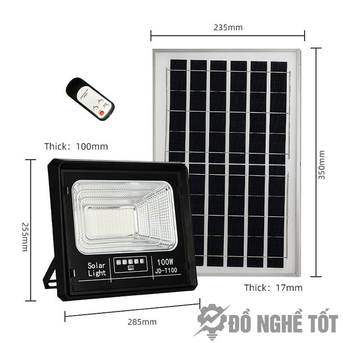 Đèn năng lượng mặt trời 100W tích hợp chức năng điều khiển từ xa , cho phép bật tắt đèn khi có nhu cầu