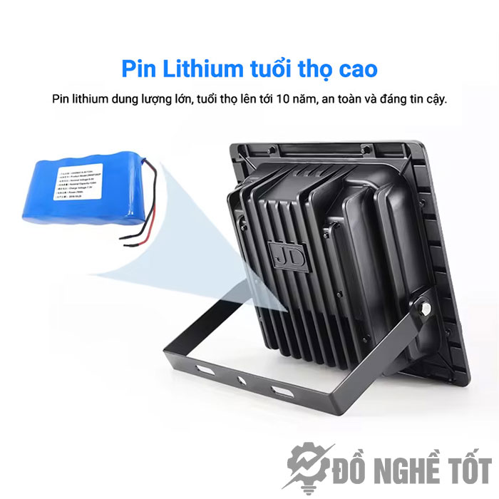 Pin sạc: Pin của đèn năng lượng mặt trời là loại pin Lithium. Đây là loại pin đặc biệt chuyên dùng cho các sản phẩm vừa nạp vừa xả trong thời gian dài mà không ảnh hưởng đến tuổi thọ. Độ bền của pin Lithium có thể kéo dài hơn 5 năm.