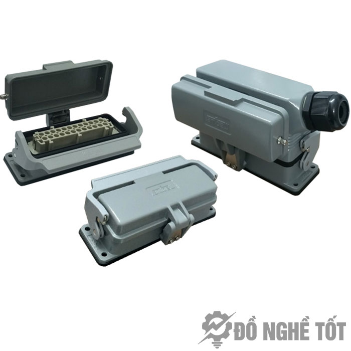 Giắc cắm công nghiệp 24 chân HE-024-M HE-024-F DNT145 là thiết bị kết nối dây điện, dây tín hiệu, dây động lực cho hệ thống điện, hệ thống truyền thông công nghiệp, hệ thống máy ép nhựa công nghiệp. Bộ kết nối dây 24 chân, cổng kết nối dây 24 pin