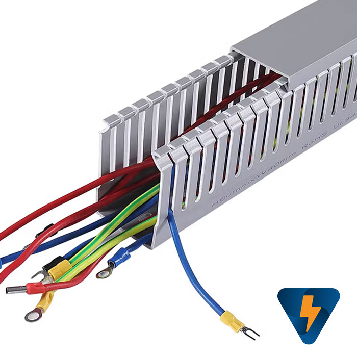 Máng nhựa cao 100x100mm dài 2 mét 100100GWD, là thiết bị dùng để đi dây điện, xếp gọn dây điện dây mạng, làm gọn dây máy tính, dùng cho hệ thống tủ bảng điện và thiết bị công nghiệp dân dụng, máng nhựa răng nhuyễn, răng nhỏ.