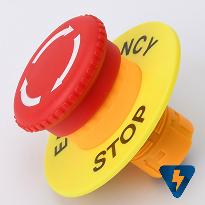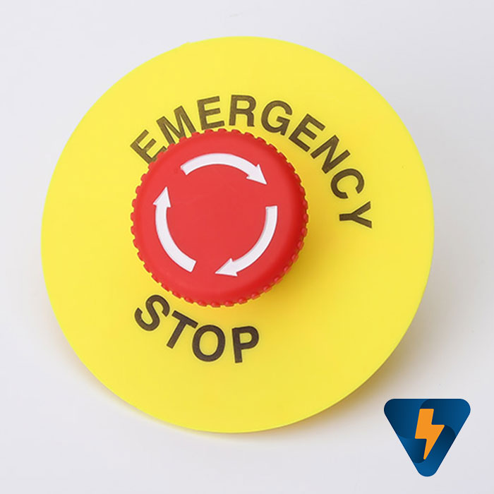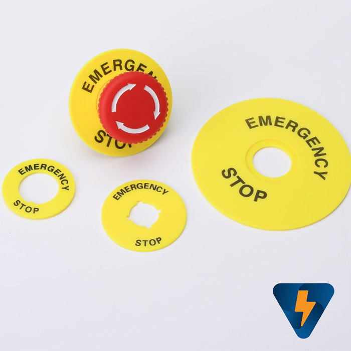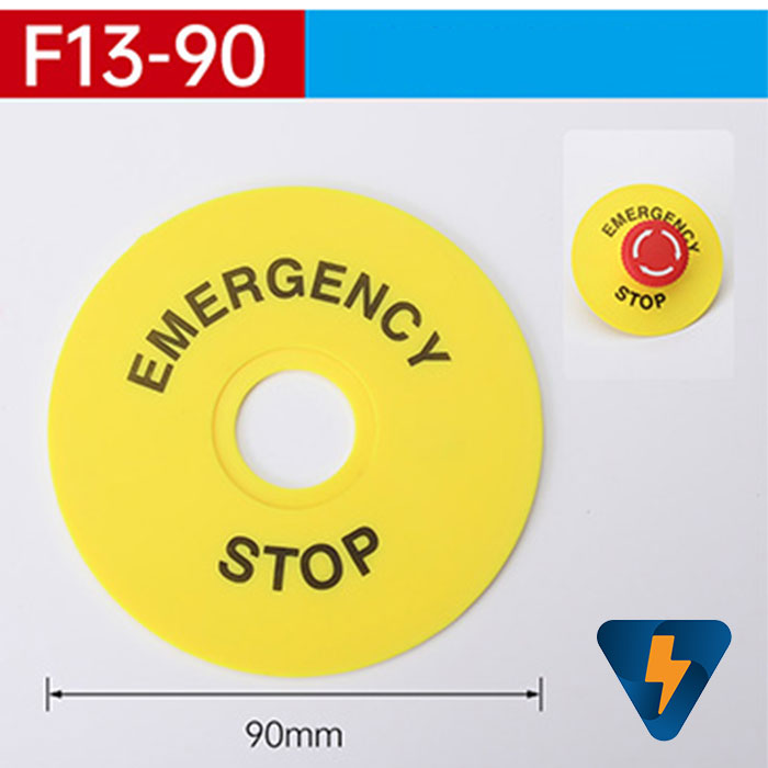 Mica nhựa ghi nhãn EMERGENCY STOP , miếng nhựa ghi tên nút nhấn, đai mác ghi tên nút nhấn F13-60 , F1360, F13-90, F1390